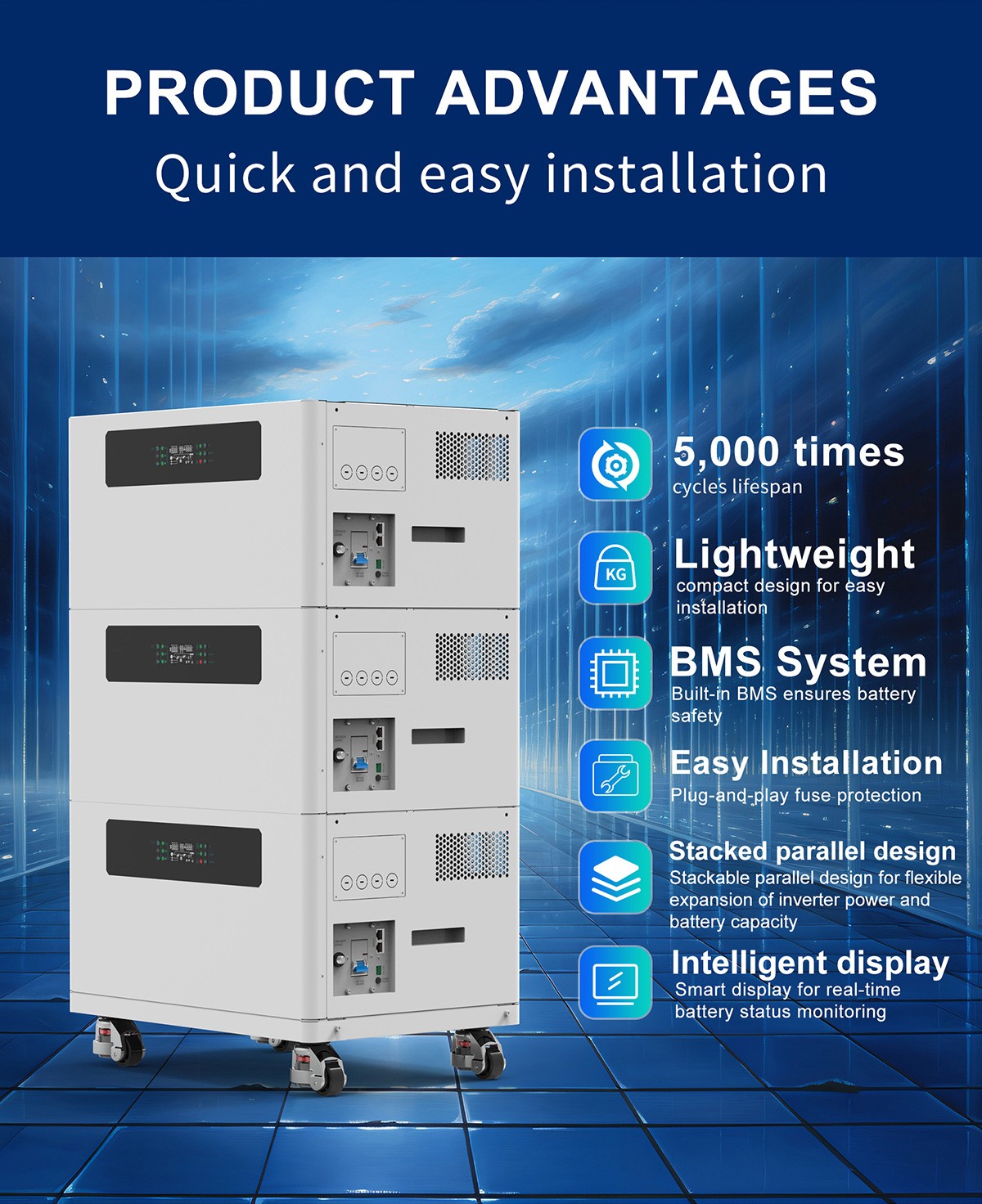 | High AC Voltage Battery Module, ≥8000 Cycles, Heavy load, High security, 3 parallel units |