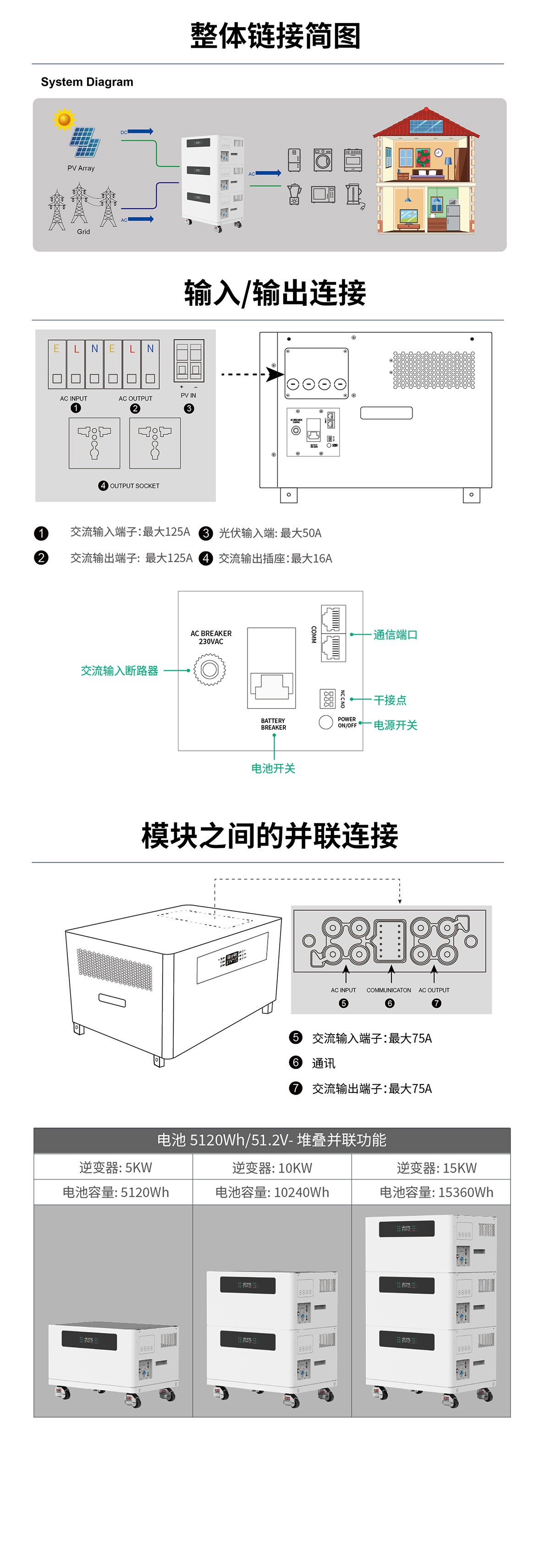 | 高压交流电池模块,≥8000次循环,重负荷,高安全性,3个并联单元 |